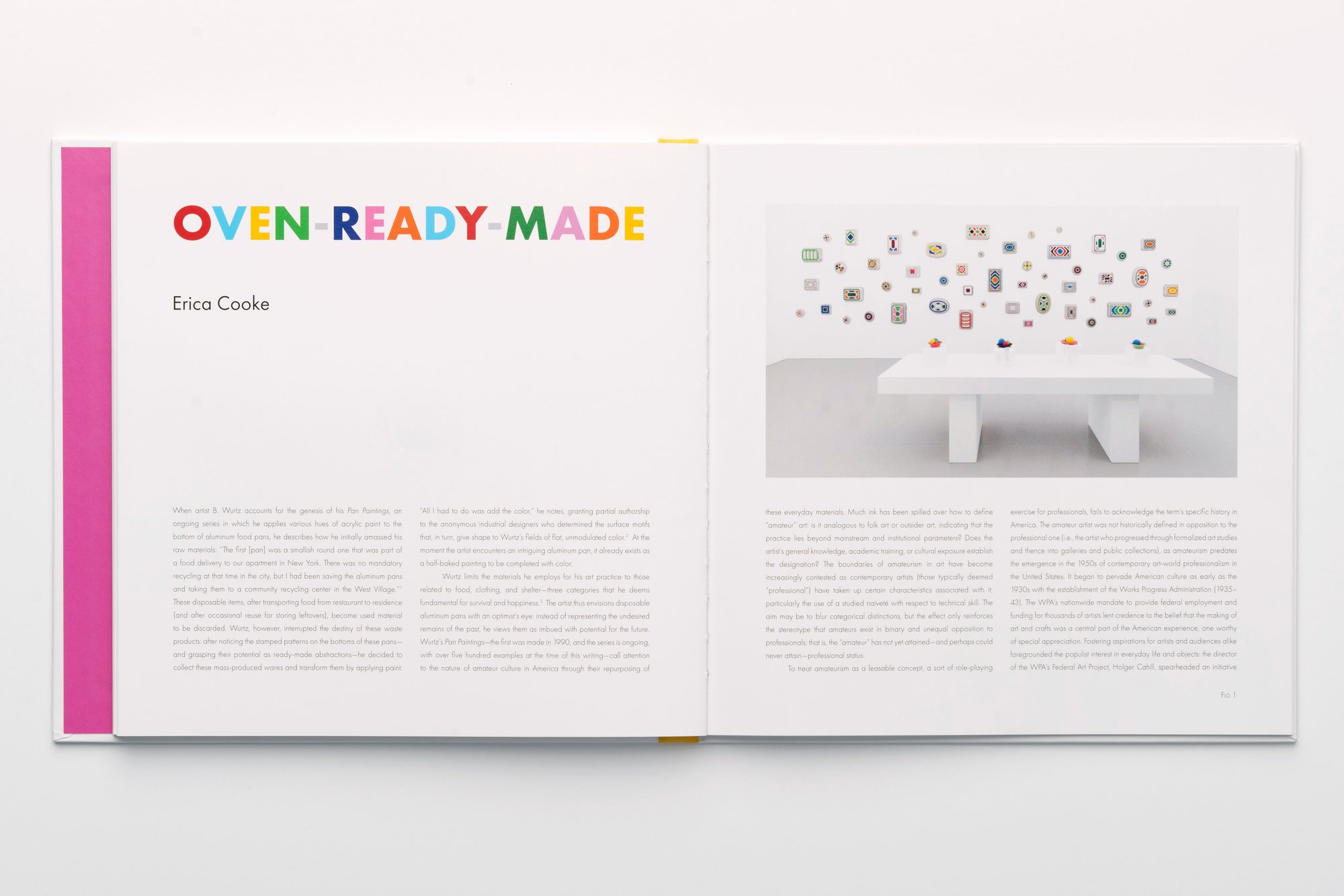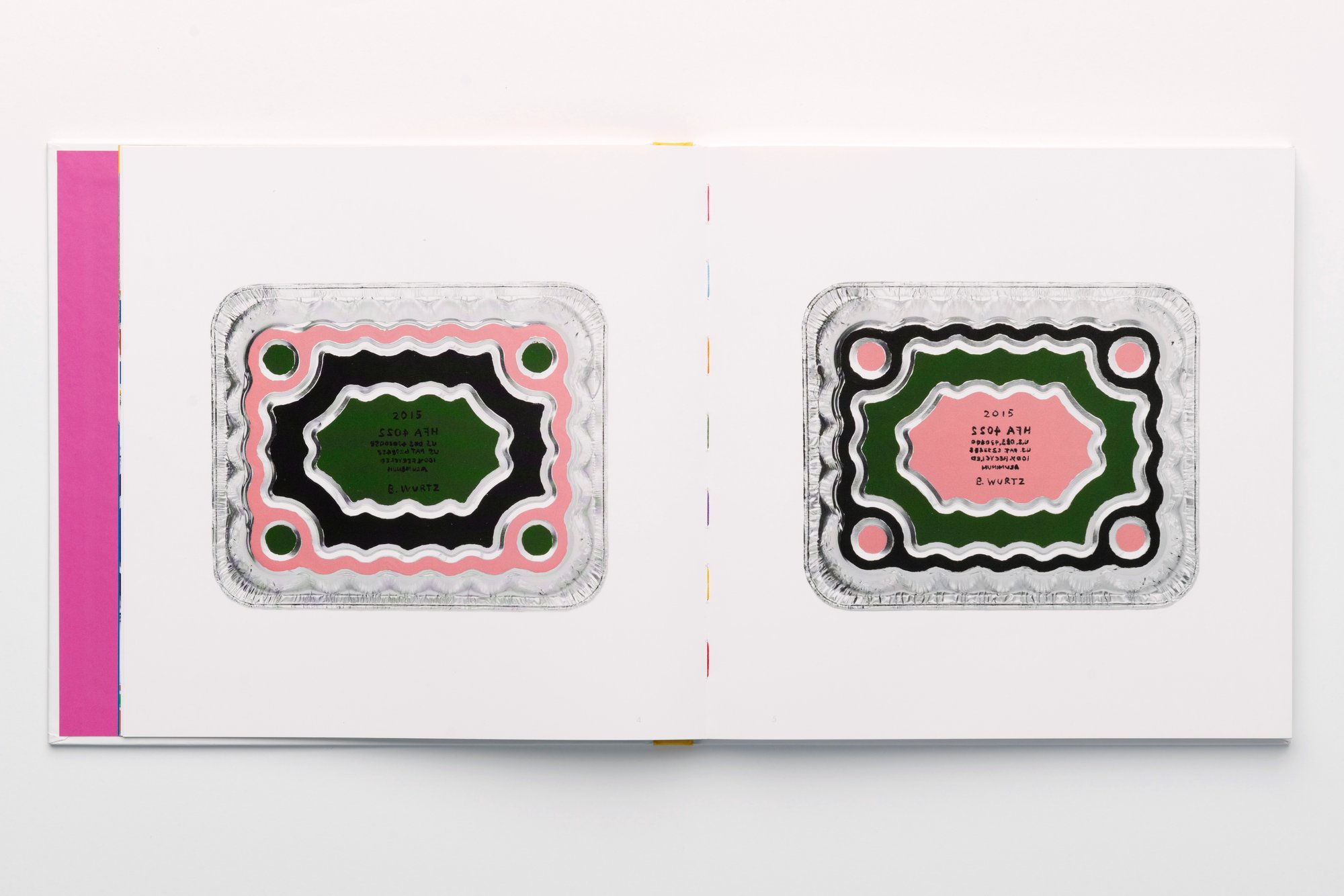 For nearly five decades New York–based artist B. Wurtz (born 1948) has transformed humble materials and discarded objects into humorous and wryly beautiful works of art. This full-color, Swiss-bound monograph focuses on the artist’s iconic series of ”pan paintings” made on disposable aluminum roasting pans and to-go containers. In 1990, Wurtz discovered patterns stamped in the bottom of these mass-produced products and grasped their potential as “readymade abstract paintings.” In the three decades since, he has worked across a wide variety of pan shapes and sizes, applying dazzling combinations of color using the patterns as predetermined compositions. Collected here for the first time, Pan Paintings provides an overview of the various permutations in color and shape that comprise this long-term series. The book includes an essay by art historian and curator Erica Cooke which considers this critically acclaimed body of work and its deep entanglement with the craft-oriented ethos and amateur culture of postwar America.